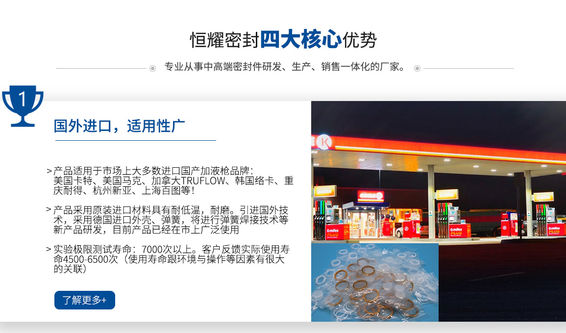 佛山市恒耀密封有限公司(香港恒耀科技有限公司)是一家從事高難度密封件研發(fā)、生產(chǎn)、銷售一體化的廠家。我們的理念:以質(zhì)量求生存、以服務(wù)求發(fā)展、以誠信對(duì)待客戶。 在解決高速旋轉(zhuǎn)、超低溫、超高壓、超高溫、強(qiáng)腐蝕等及其苛刻的工況方面有著成熟的技術(shù),先進(jìn)的技術(shù)服務(wù)實(shí)力、團(tuán)隊(duì)具備應(yīng)對(duì)各種復(fù)雜工況密封系統(tǒng)的研發(fā)設(shè)計(jì)開發(fā)能力。我們的品質(zhì)始終如一,給您的產(chǎn)品立于不敗之地,共同開發(fā)市場,我們的真誠服務(wù),持續(xù)為您創(chuàng)造價(jià)值。 我們的產(chǎn)品廣泛應(yīng)用于LNG、CNG、LH2低溫液態(tài)新能源設(shè)備、點(diǎn)膠機(jī)、機(jī)械手等自動(dòng)化機(jī)械設(shè)備;環(huán)保型食品機(jī)械、灌裝機(jī);低溫泵、計(jì)量泵、尿素泵、電磁閥、安全閥、高壓閥、噴射閥、溢流閥等泵...